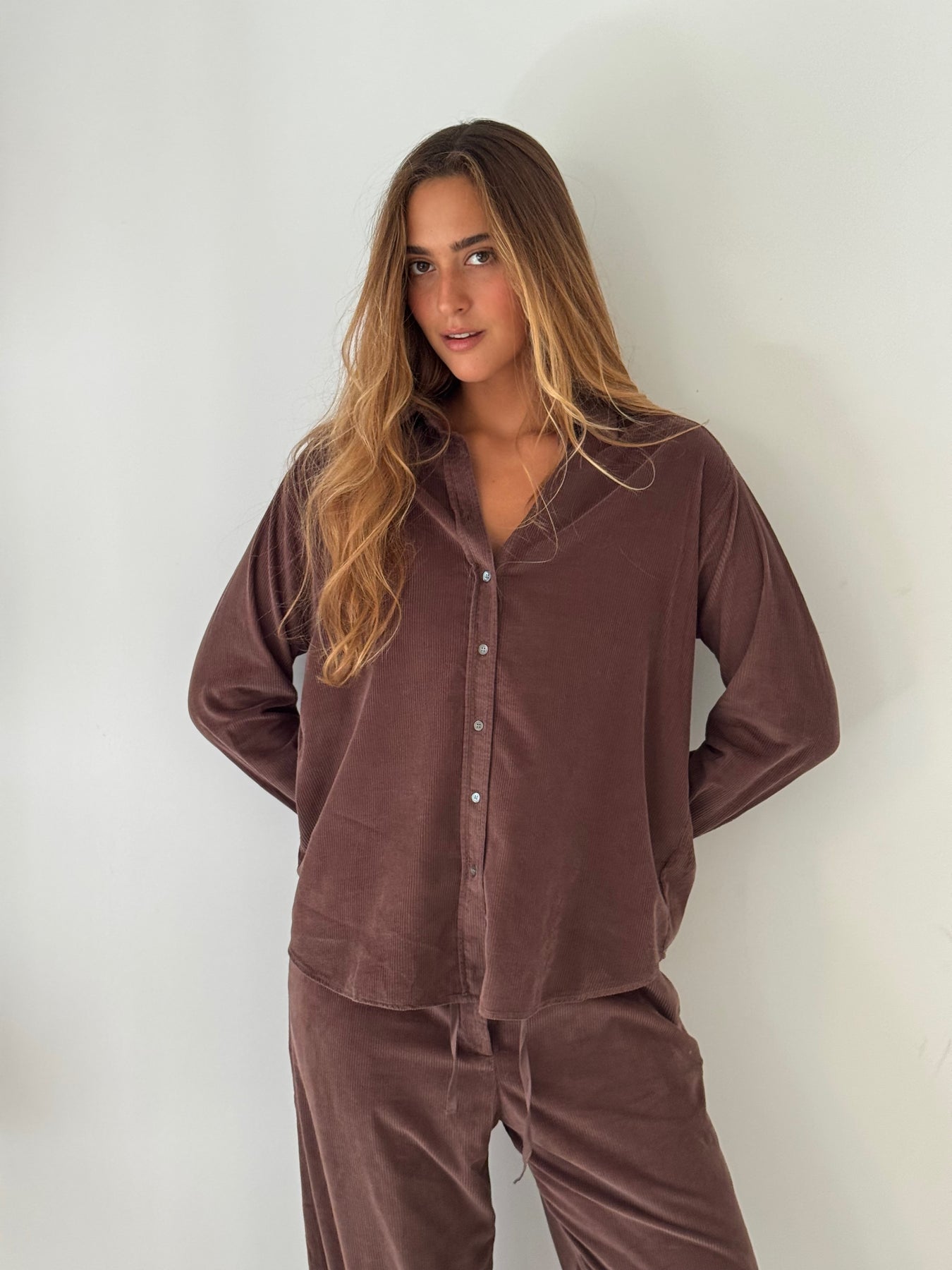 חולצת כפתורים לנשים עשויה מבד קורדרוי רך במרקם עדין, המשלב נוחות עם מראה אלגנטי ונינוח. הגזרה הישרה מאפשרת לבישה קלה כשכבה מעל טי-שירט או לבדה למראה קלאסי ובלתי מתאמץ. הבד הנושם והנעים למגע הופך אותה לפריט מושלם