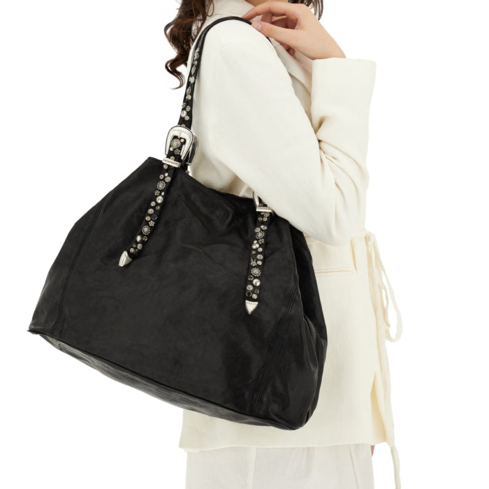 תיק קניות לנשים Lidia – עור איטלקי עם ניטים ואבני נוצץ