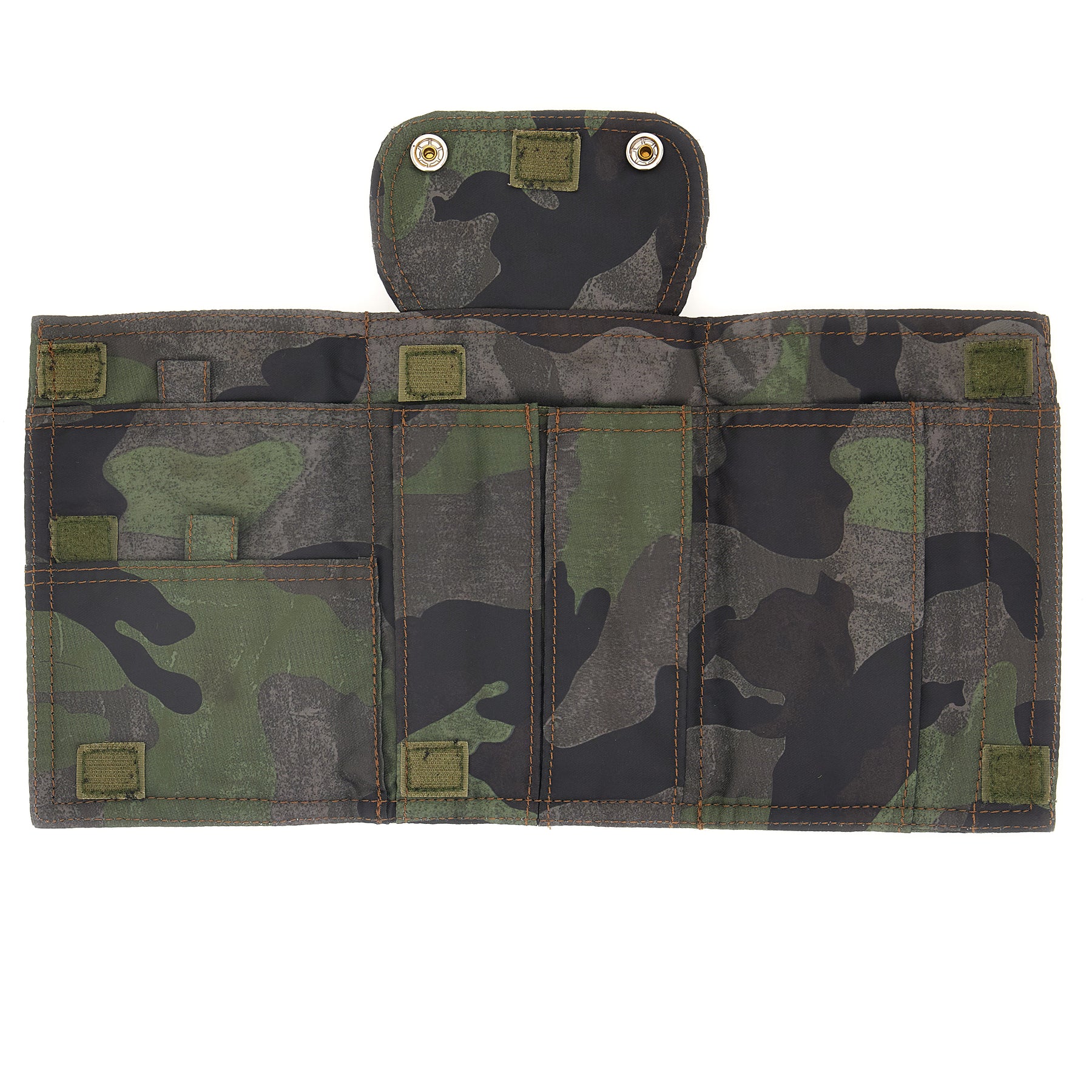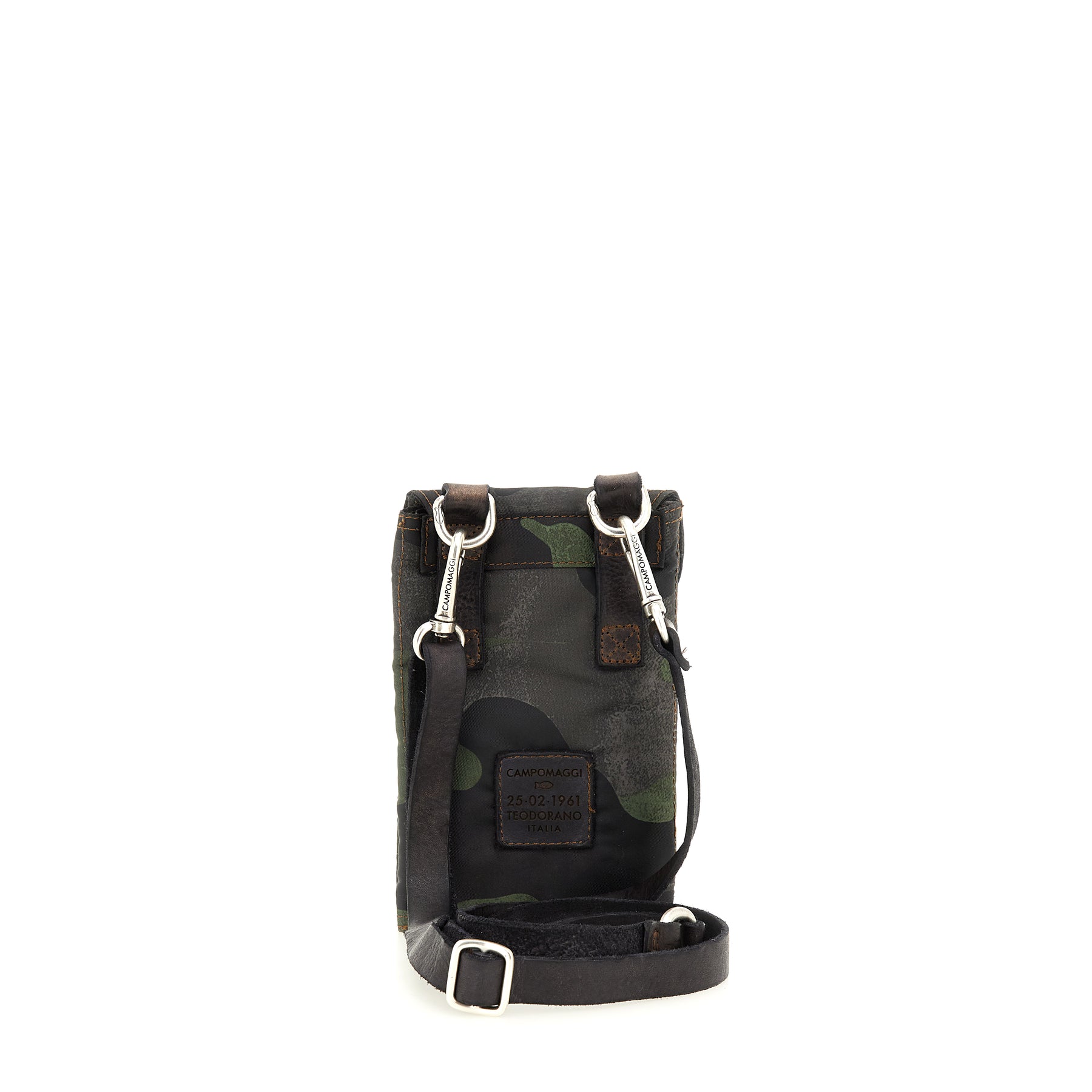 נרתיק טלפון בסגנון גברי אאוטדור, עשוי ניילון ועור איכותי בצביעה ידנית בגוון קמופלאז’ אפור, אידיאלי לאחסון מסודר של הטלפון וחפצים קטנים.