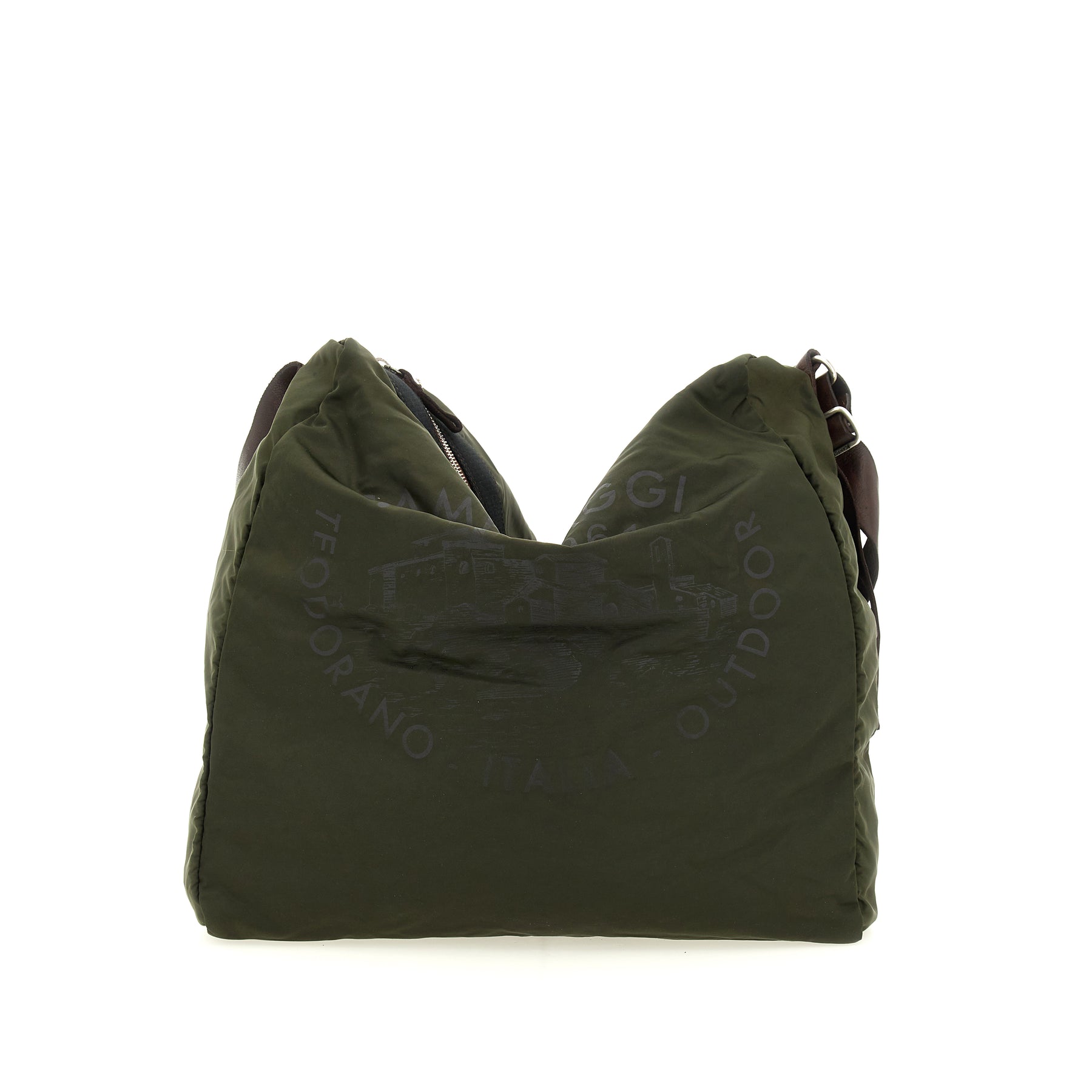 תיק בעיצוב גברי, משלב ניילון ועור איכותי בצביעה ידנית עם הדפס ייחודי בצבע חום צבאי למראה עמיד ואותנטי. מתאים לנסיעות קצרות או שימוש יומיומי, עם תא מרכזי מרווח לאחסון נוח של חפצים.