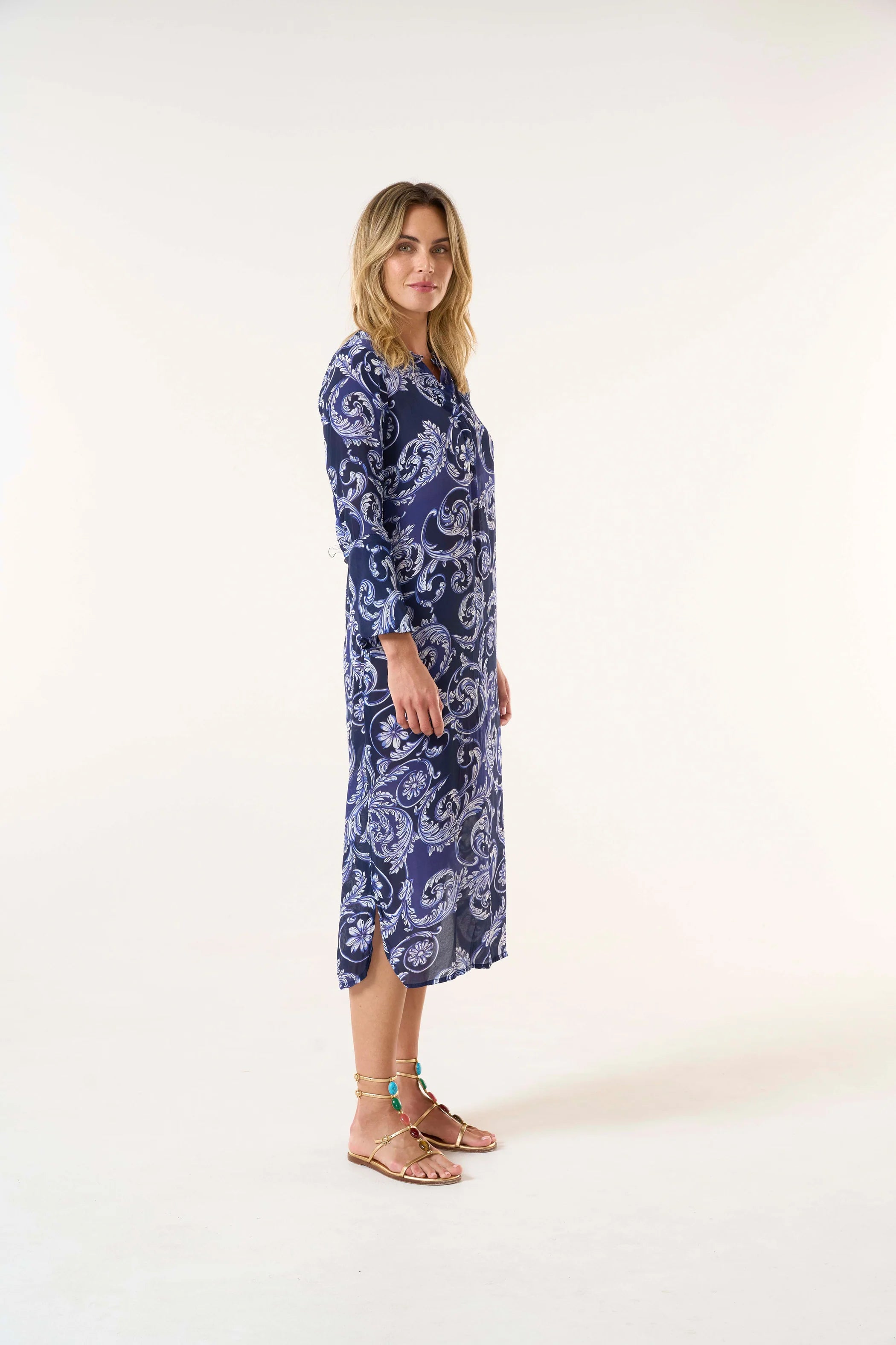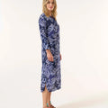 שמלת מקסי אלגנטית שתשדרג את המלתחה שלך. בגזרה ישרה למראה קלאסי ועל-זמני, עשויה ויסקוזה נושמת לנוחות מקסימלית. המחשוף העגול הרך והחפתים המתרחבים מוסיפים טאץ' מתוחכם ועדין.