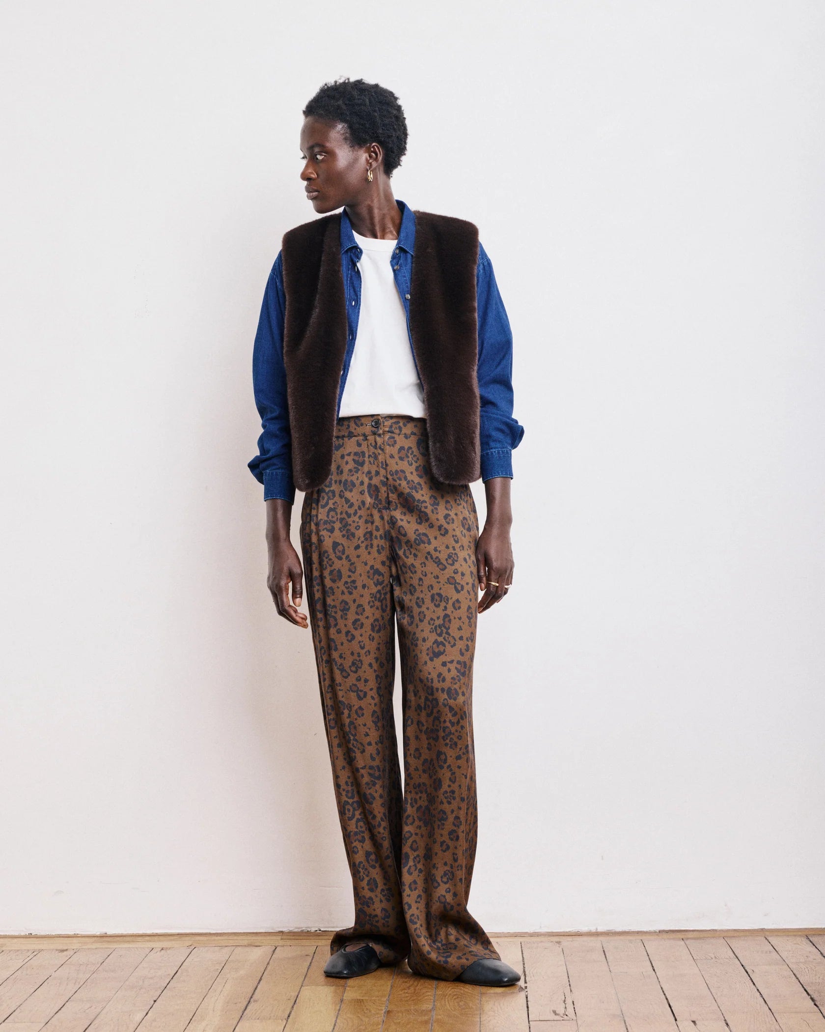 וסט פרווה מלאכותית לנשים בגזרת ללא שרוולים, עם מחשוף בצורת V וסגירה בשלושה קרסים קדמיים. כולל שני כיסים אלכסוניים. פריט מדויק לחורף הישראלי, מחמם ונעים למגע.
