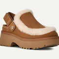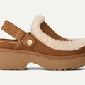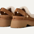 סנדל קלאסי סגור עשוי זמש אמיתי, עם תפרים חיצוניים מרופדים בצמר כבש עשיר לעיצוב חמים ונעים לעין.