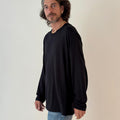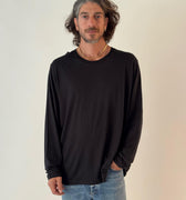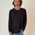 חולצת שרוול ארוך עם צווארון עגול, עשויה מבד משולב של 67% ליווצ’ל ו-33% כותנה אורגנית, רכה ונושמת, נוחה ליום-יום