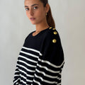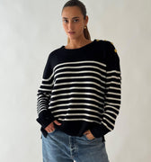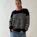 סריג פסים ארוך עם סגירה בצווארון וי, עשוי מ-90% צמר ו-10% קשמיר. סריג רך ונושם, מעניק חימום קל ומראה קלאסי ומתוחכם