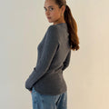 סוודר בגוון אפור בהיר, עשוי מ-100% צמר מרינו סופרפיין. נעים למגע, קליל אך מחמם, ומתאים ללבישה יומיומית או בשילוב עם פריטים קלאסיים לעיצוב אלגנטי ונוח