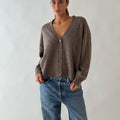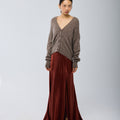 סוודר וי, עשוי מתערובת יוקרתית של 54% צמר, 23% קשמיר ו-23% משי. סריג עדין ורך שמעניק חימום קל ומראה אלגנטי ומלטף, מתאים ללבוש יומיומי או לשכבות עם פריטים נוספים