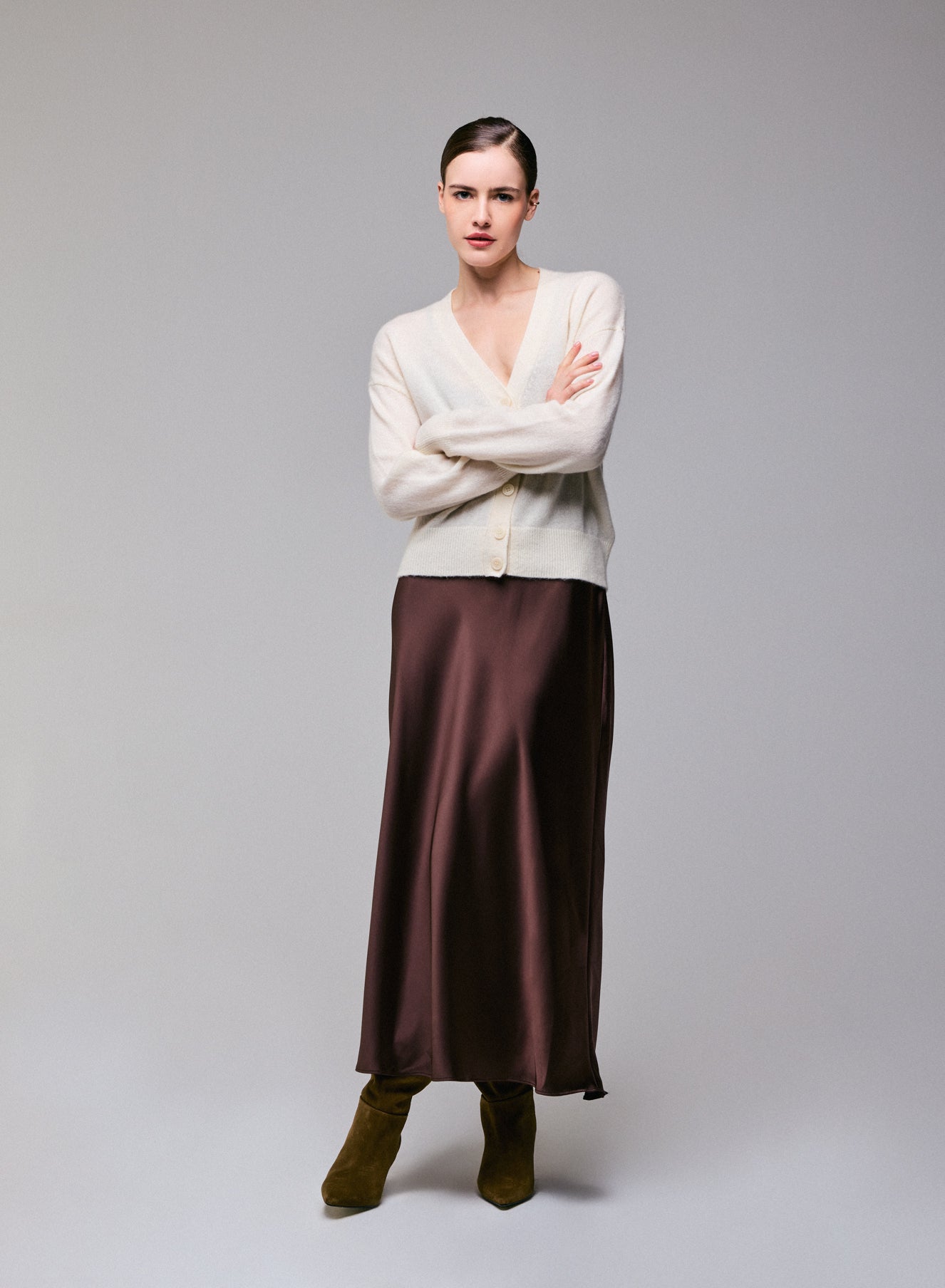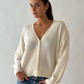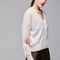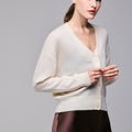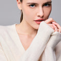 סוודר וי, עשוי מתערובת יוקרתית של 54% צמר, 23% קשמיר ו-23% משי. סריג עדין ורך שמעניק חימום קל ומראה אלגנטי ומלטף, מתאים ללבוש יומיומי או לשכבות עם פריטים נוספים