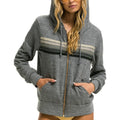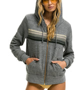 סווטשירט קפוצ’ון עם רוכסן ופסים , עשוי מבד רך ונושם עם פסים רקומים ידנית ומראה וינטג’.