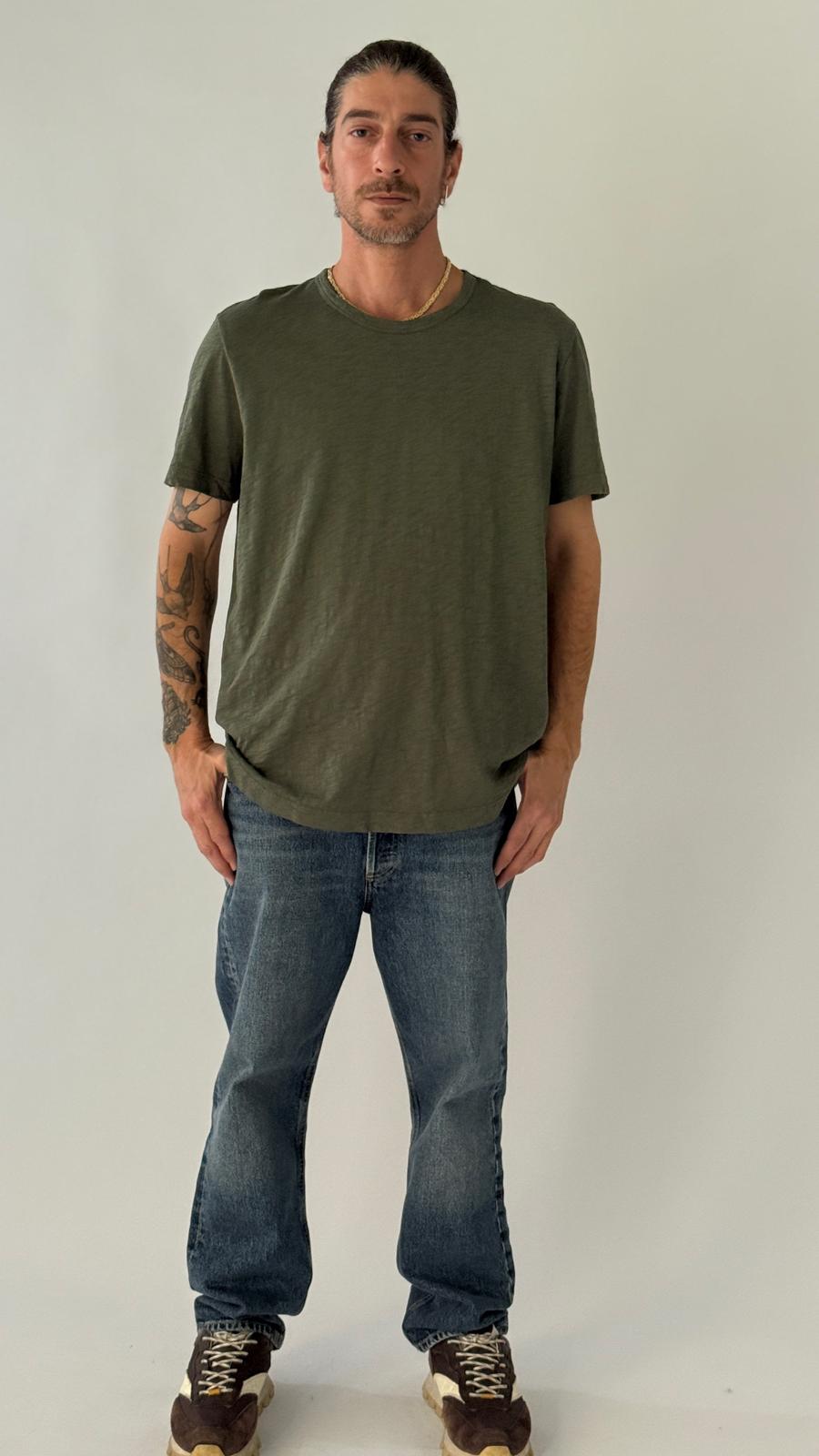 טי־שירט קלאסית בגזרה נקייה, עשויה 100% כותנה פרואנית קלה במרקם סלאב טבעי. צווארון עגול וגימור מכפלת מעוגלת מעניקים מראה מוקפד אך יומיומי.