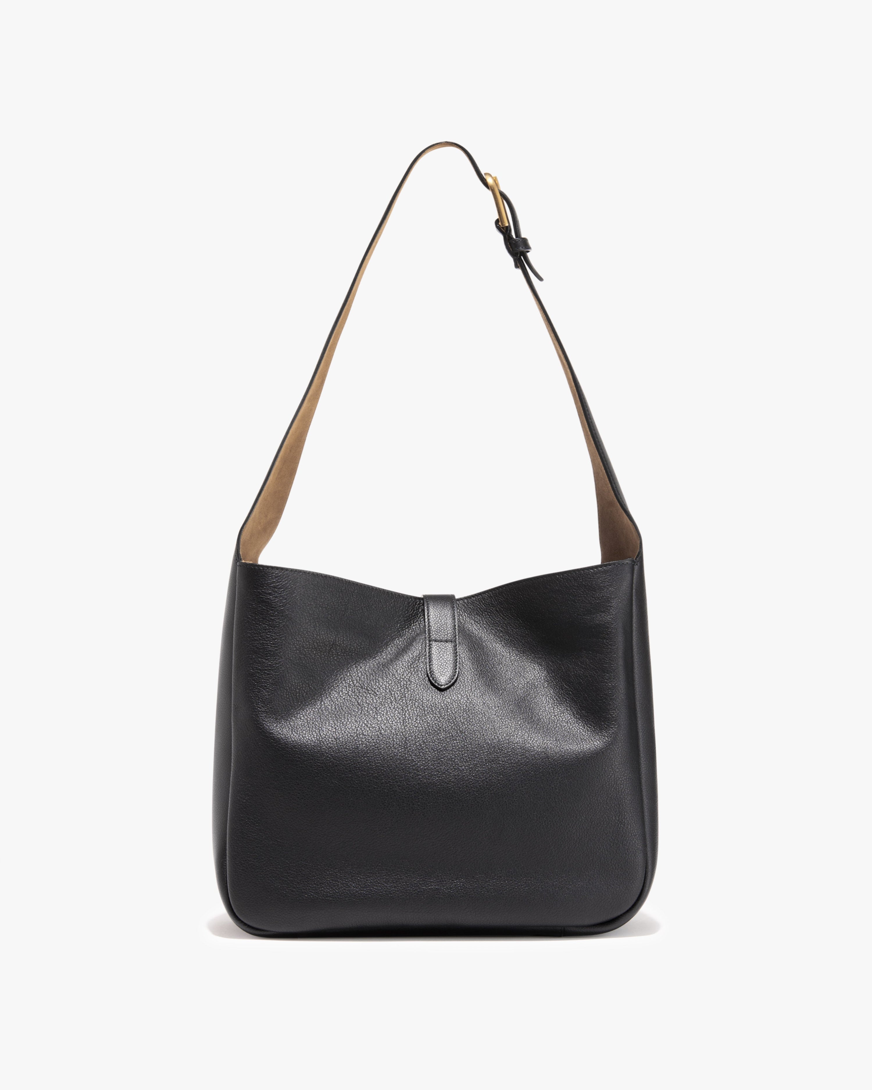 תיק עור בצבע שחור בעיצוב מינימליסטי ואלגנטי, עם קווים נקיים ומראה על־זמני. מתאים לנשיאה יומיומית או לערב, ומשתלב בקלות עם כל לוק קלאסי או מודרני.
