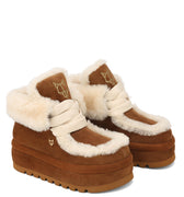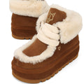 מגף אופנתי בעל נוכחות ייחודית, עשוי זמש יוקרתי עם בטנת פרווה רכה ומחממת — מושלם לימים הקרים.