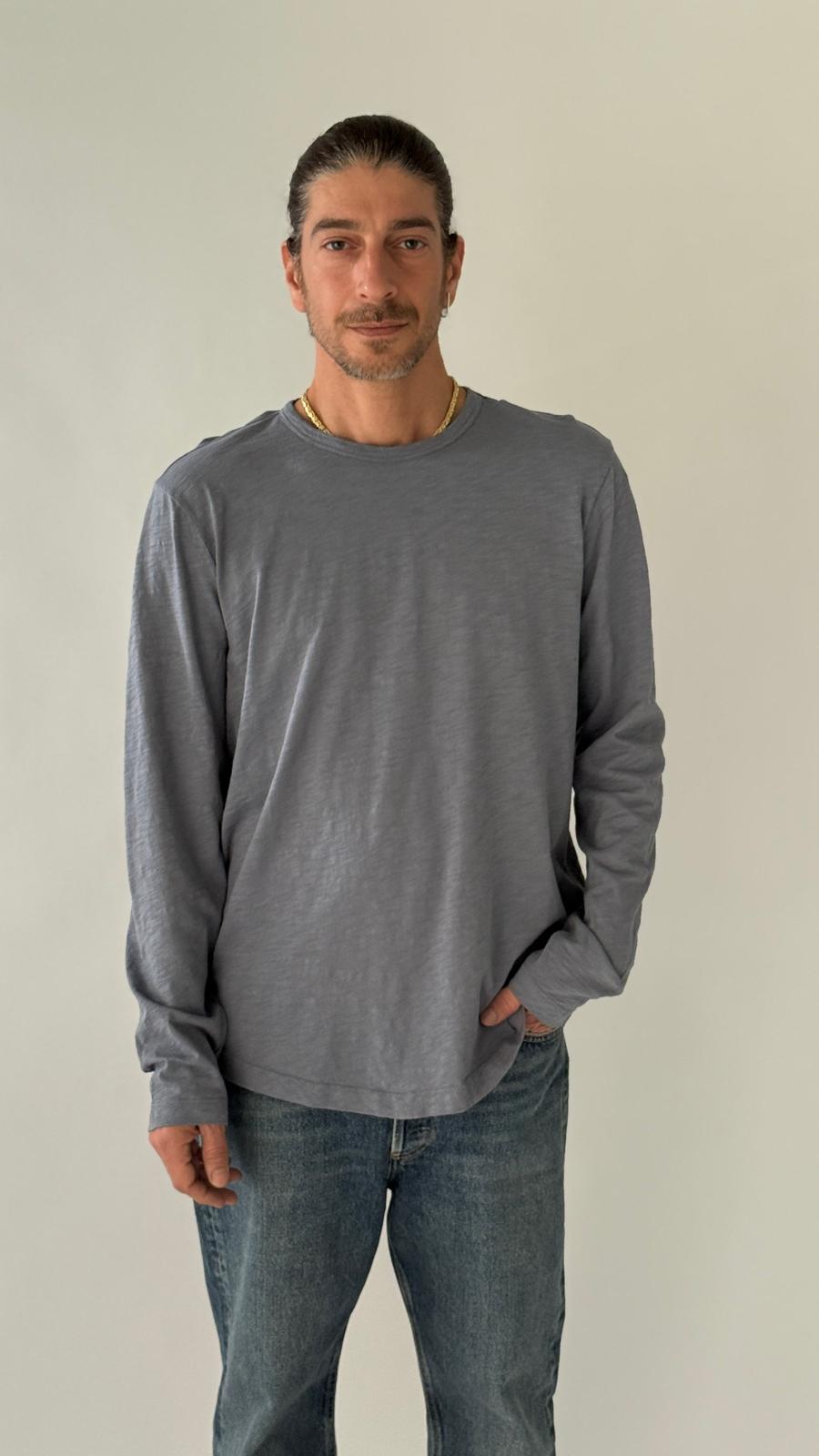 חולצת טי ארוכה עם שרוולים מלאים, עשויה כותנה פרואנית קלה. כוללת צווארון עגול קלאסי והקפה מחודדת. פריט בסיסי איכותי וקל לשילוב בשכבות או כפריט עצמאי.