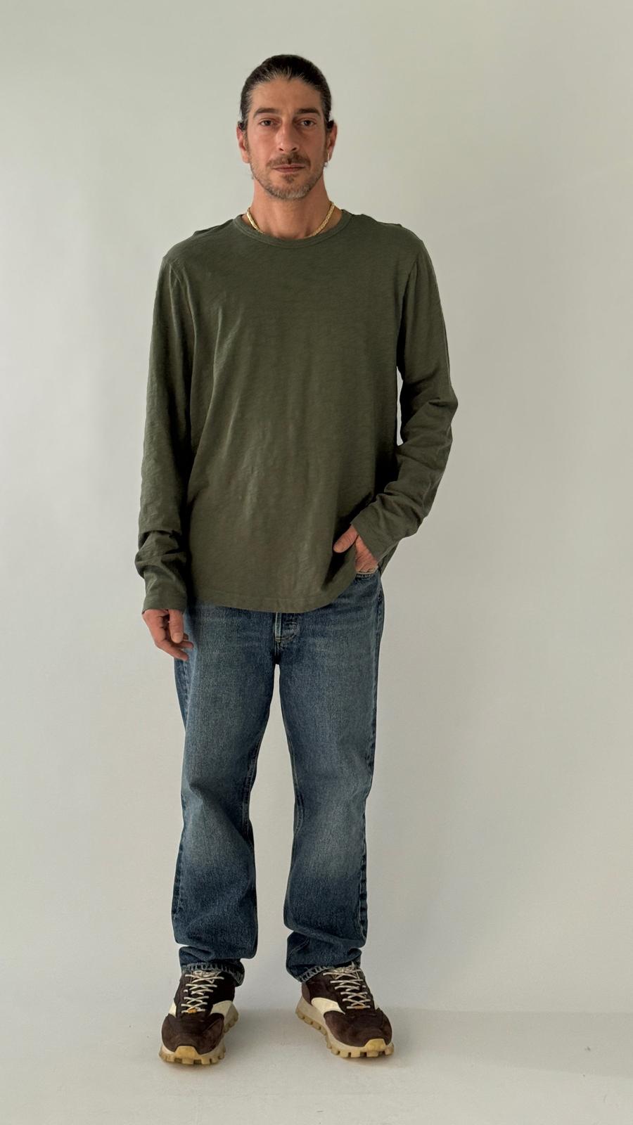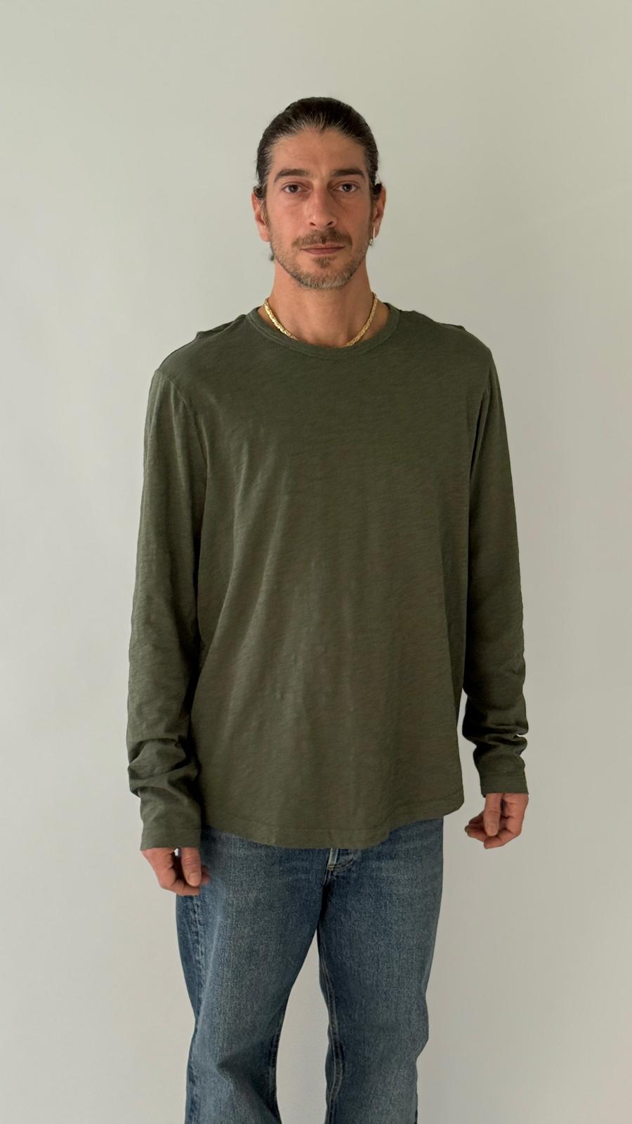חולצת טי ארוכה עם שרוולים מלאים, עשויה כותנה פרואנית קלה. כוללת צווארון עגול קלאסי והקפה מחודדת. פריט בסיסי איכותי וקל לשילוב בשכבות או כפריט עצמאי.