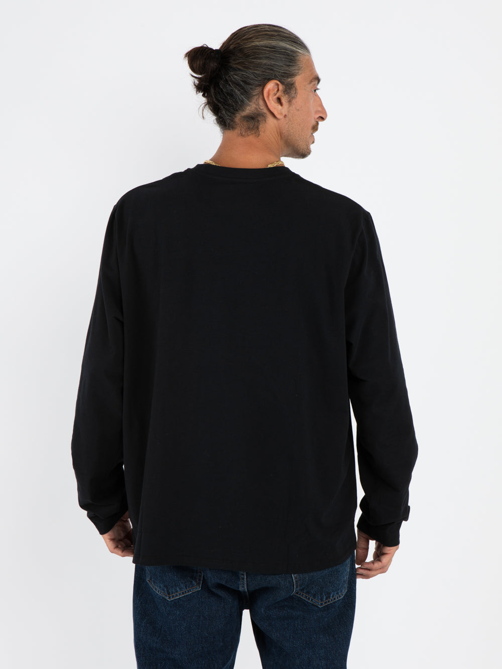 טי-שירט ארוכה בגזרת סלים ישרה, מדויקת ונקייה – כזו שנראית מעולה גם לבד וגם כשכבה תחתונה.