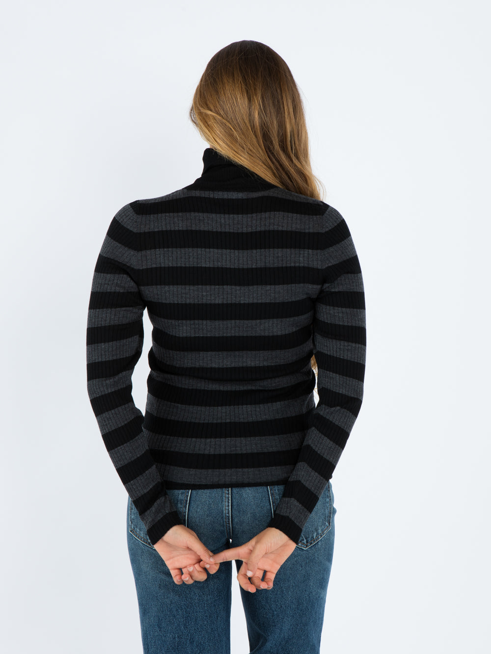 סריג דק בגזרת גולף קלאסית, עשוי מ־100% צמר מרינו רך ונושם, עם דוגמת פסים עדינה שמוסיפה עניין וסטייל.