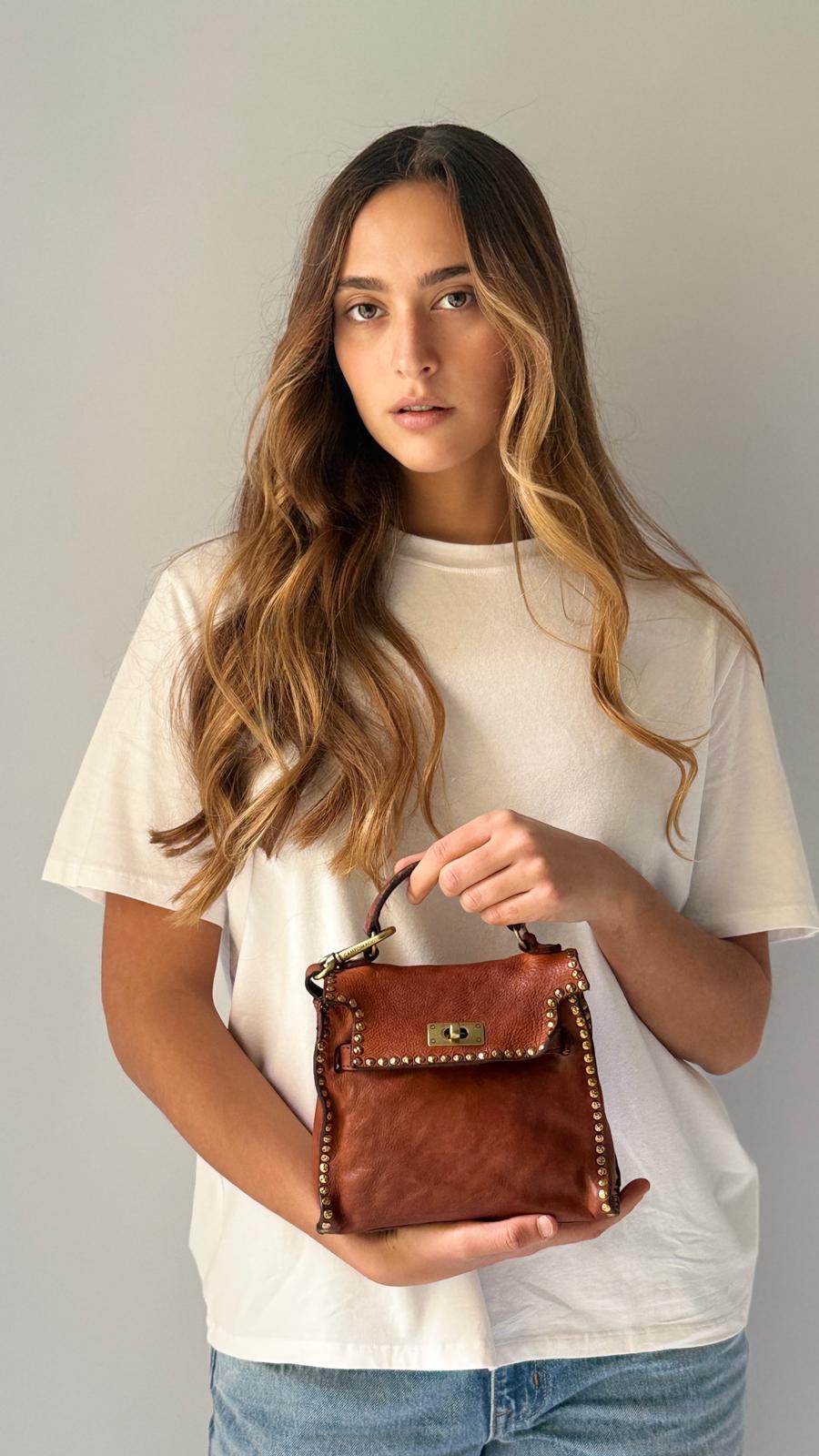 תיק כתף עם ניטים, בעיצוב קטן ונוח, שמוסיף נגיעה של סטייל אלגנטי וקצת קשוח לכל מראה