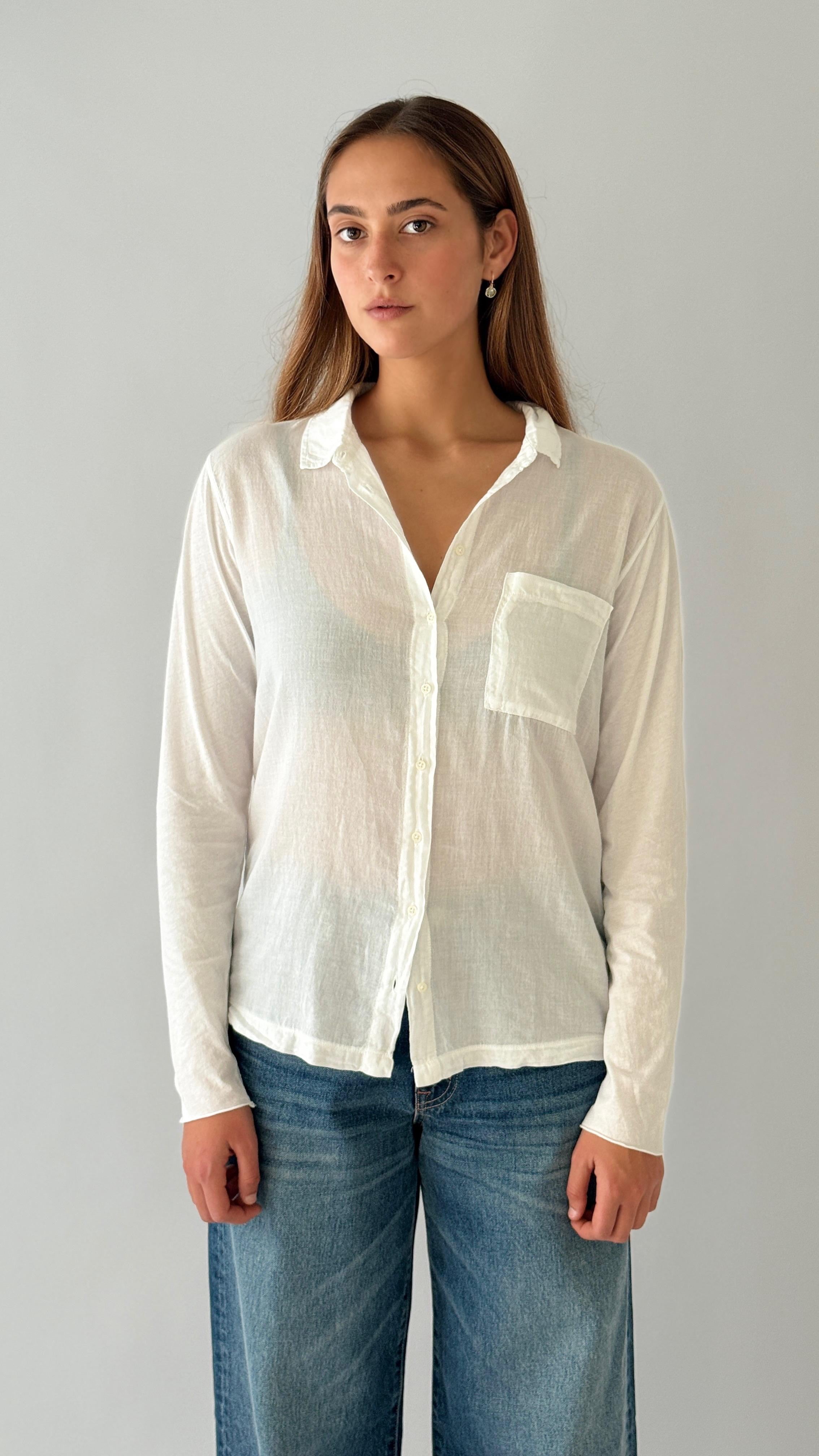 חולצה מכופתרת בגזרה נינוחה, עם כיס קדמי להשלמת המראה הקז׳ואלי. עשויה בד קל ונעים, מתאימה ליום-יום ולשילוב שכבות בקלות