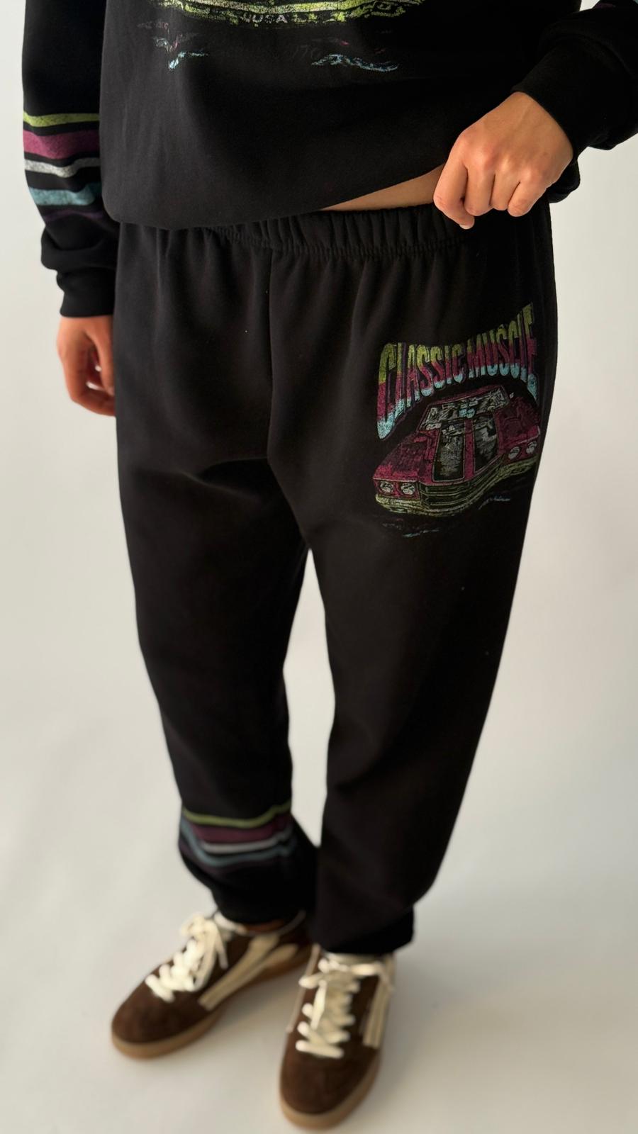 מכנס בגזרה נוחה עם הדפס רכב בסגנון וינטג׳, שמכניס וייב רוקנרולי ובועט ללוק. עשוי בד רך ונעים, מתאים ליום־יום ולשילוב עם טי־שירט או סווטשירט למראה מלא אופי.