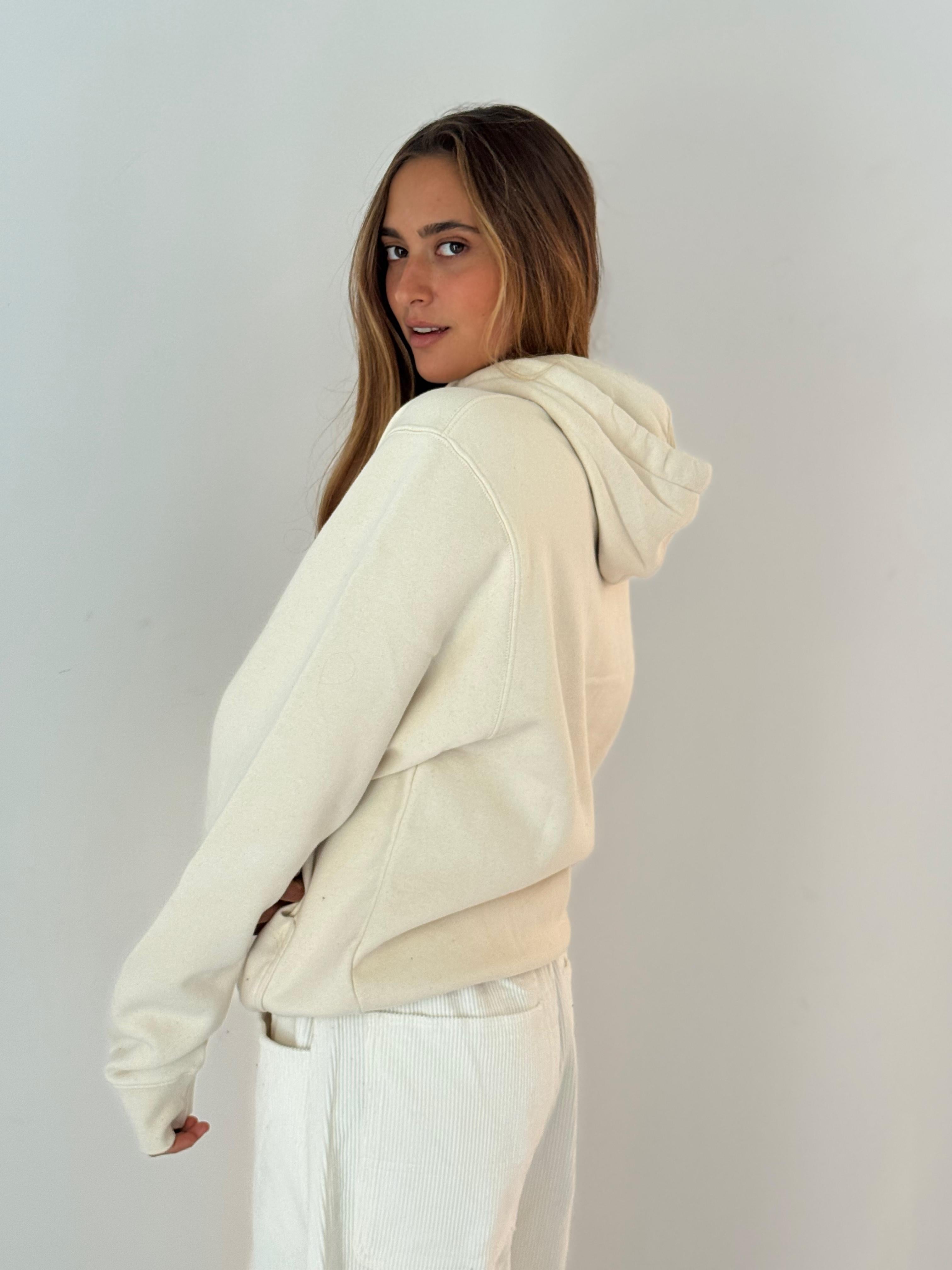סווטשירט Jagger בגוון טבעי, עשוי 80% כותנה ו‑20% פוליאסטר עם שטיפה רכה למגע נעים במיוחד. הקפוצ’ון משלב נוחות יומיומית עם סטייל אורבני מודגש