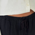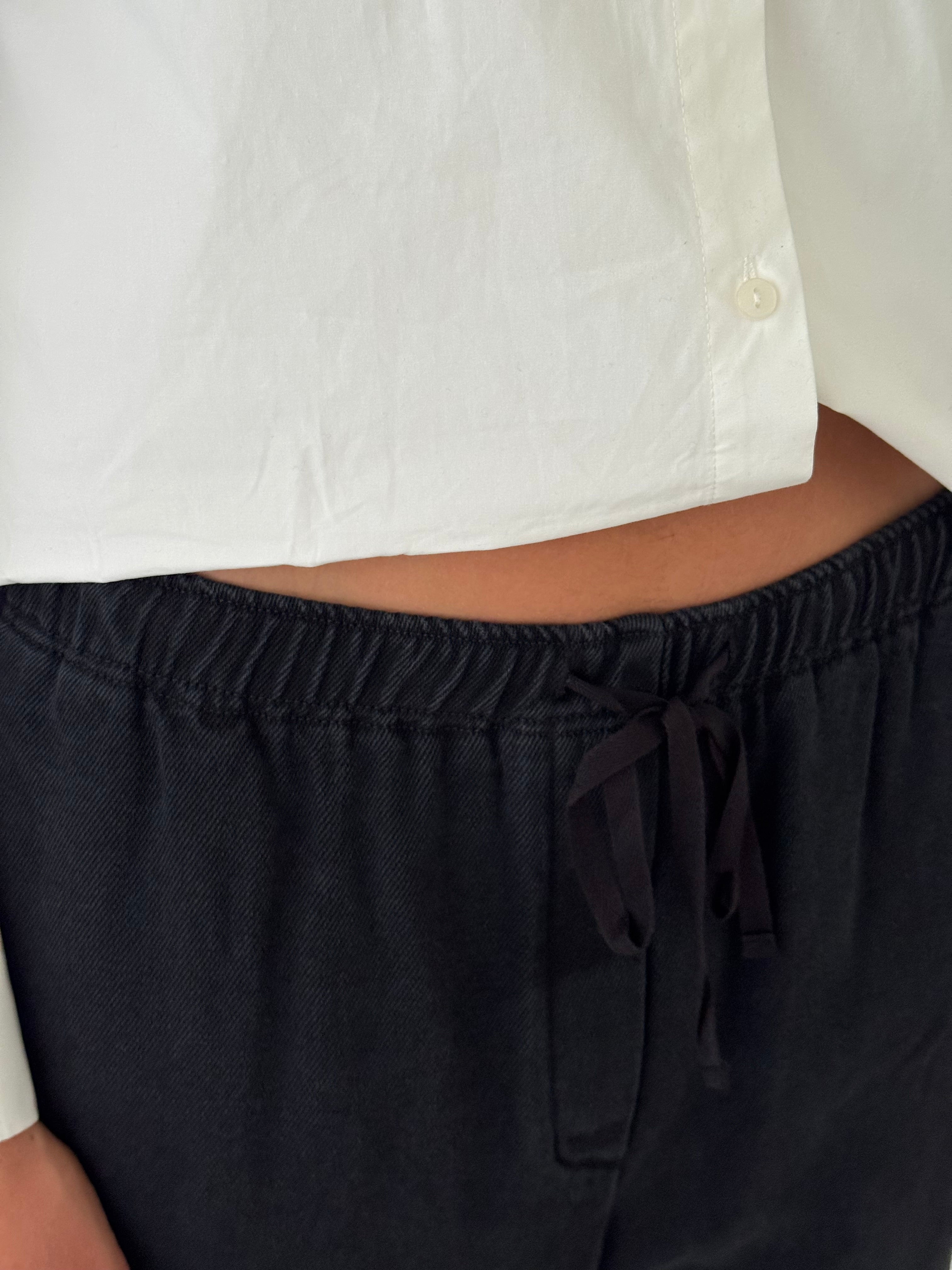 מכנסי נשים בגזרת סטרייט, מכנס נעים למגע עם מותן אלסטית ושרוך קשירה להתאמה אישית שני כיסים איטלקיים בצדדים ושני כיסי וולט עם כפתור בגב לעיצוב אלגנטי ונינוח כאחד