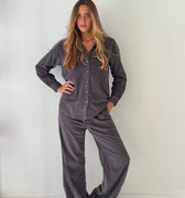 מכנסי נשים ארוכים ורחבים מבד קורדורוי רך עם גומי במותן ושרוך קשירה להתאמה מושלמת שני כיסים איטלקיים בצדדים ושני כיסי וולט עם כפתור בגב פרטים עדינים של כיווץ במותן מוסיפים מראה נשי ונינוח