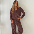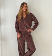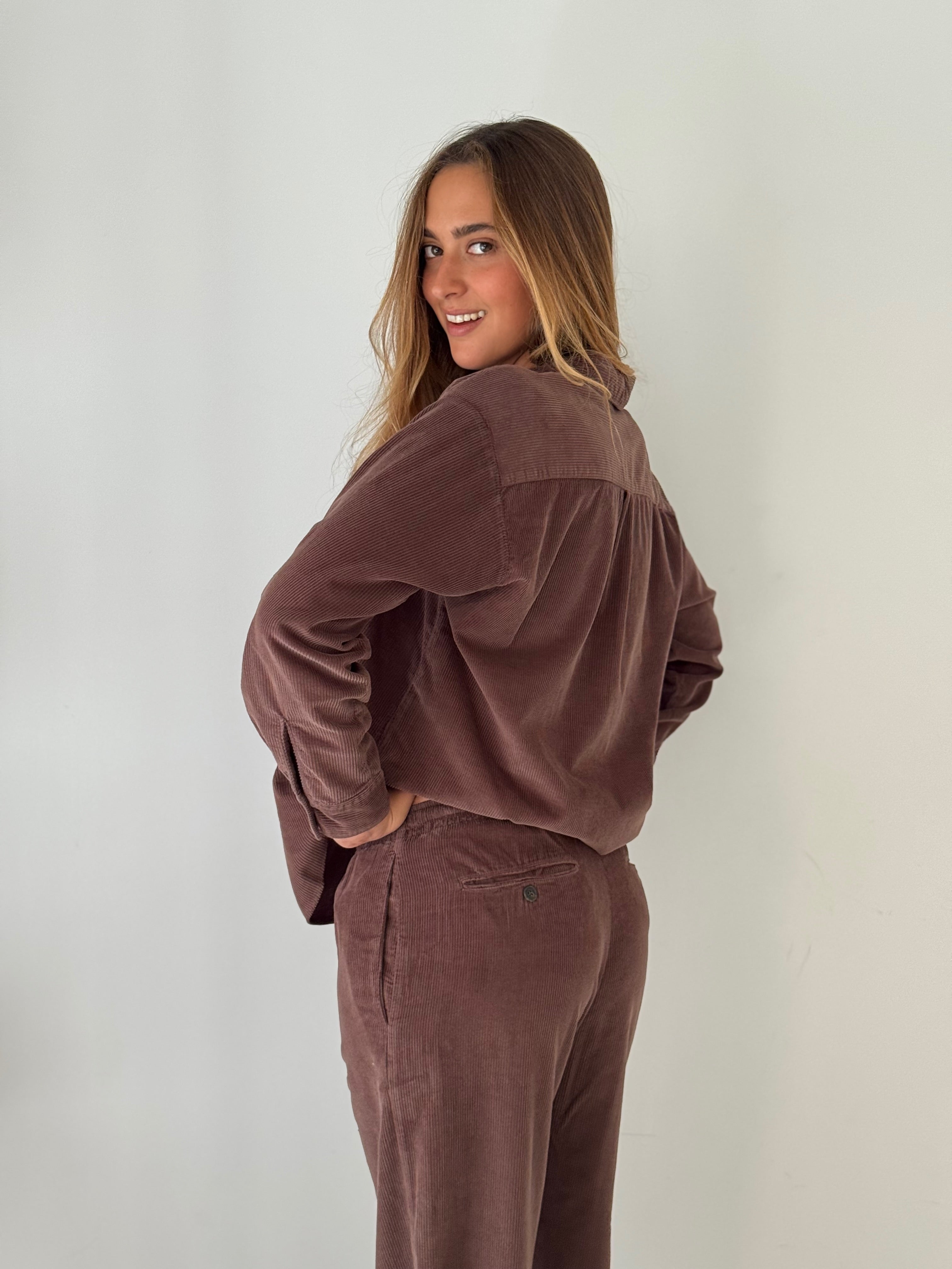 מכנסי נשים ארוכים ורחבים מבד קורדורוי רך עם גומי במותן ושרוך קשירה להתאמה מושלמת שני כיסים איטלקיים בצדדים ושני כיסי וולט עם כפתור בגב פרטים עדינים של כיווץ במותן מוסיפים מראה נשי ונינוח