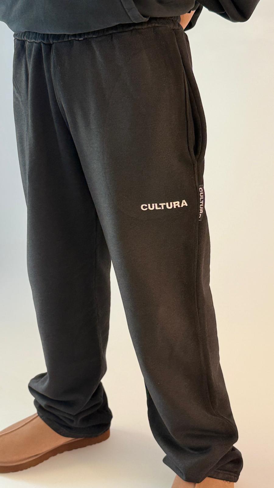 מכנסי כותנה בגזרה רכה ורחבה, יושבים נינוח ומשוחרר על הגוף לנוחות מקסימלית. בחזית רקמת לוגו ופרטי CULTURA שמוסיפים טאץ׳ סטייל מדויק ללוק היומיומי