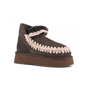 מגף פלטפורמה ייחודי בעבודת יד מדויקת, עשוי זמש איכותי ועור כבש דו-שכבתי – לחורף מלא חמימות וסטייל.