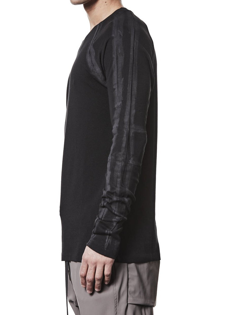 טי שירט ייחודית עם שרוולים ארוכים ושרוולי רגלן לנוחות וגמישות משולבת בפרטים מצוירים ביד לאורך התפרים למראה אומנותי עשויה מג׳רזי רך ונעים למגע חלק ונושם על העור