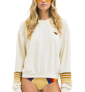 Rugby stitch 2 crew sweat relaxed V. WHITE/BROWN