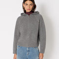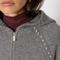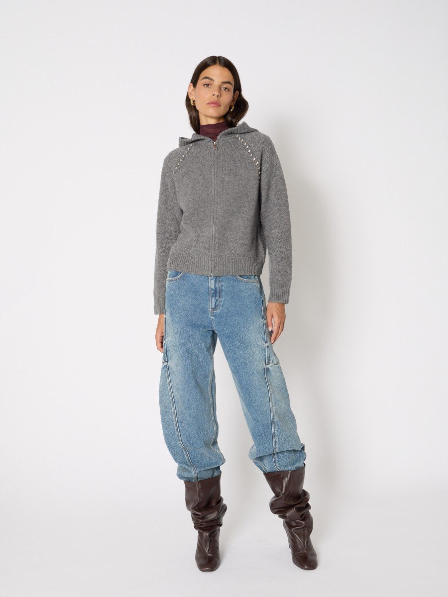 קפוצ’ון רוכסן בצבע אפור מלנג’, משלב בין נוחות לאלגנטיות. עשוי מצמר רך עם רוכסן כפול ותוספת אבני שיבוץ עדינות לאורך תפרי הרגלן, היוצרות מראה מודרני ומעודן. מושלם למראה אורבני-שיק מלא סטייל