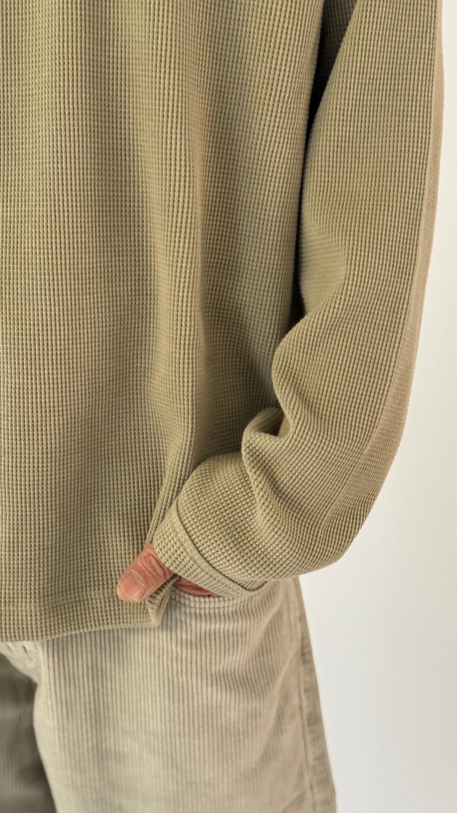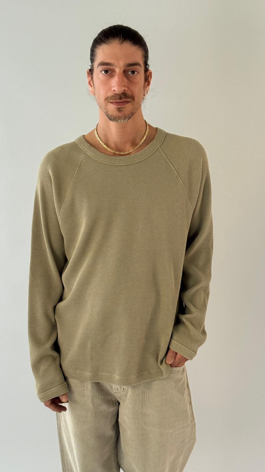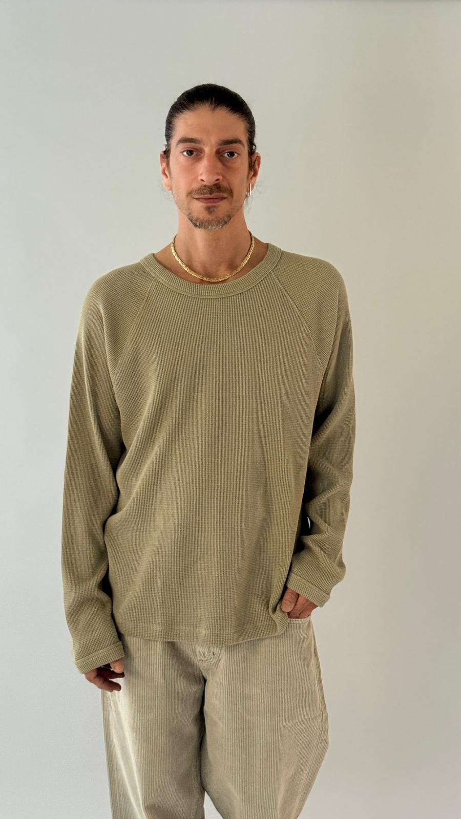 טי־שירט ארוכה, עשויה בד וופל רך ומרקם נעים למגע. גזרה במידה מדויקת, נוח ללבישה לאורך כל היום