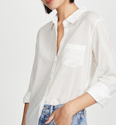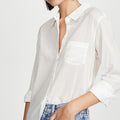 חולצת כפתורים קלילה ואוורירית, עשויה כותנה איכותית בגוון שנהב. בגזרה רפויה עם כיס קדמי, צווארון קלאסי ושרוולים שניתן לקפל ולאסוף באמצעות כפתור. פריט מושלם לימים חמים, לשילוב עם ג’ינס או מכנס מחויט