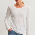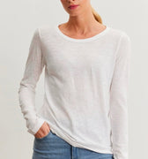 טי שירט מבד כותנה סלאב טקסטורלי, עם שרוולים ארוכים ומחשוף עגול קלאסי. מושלמת ללבישה כשכבה או בפני עצמה, בעיצוב רך ונעים שמתאים לכל עונות השנה.