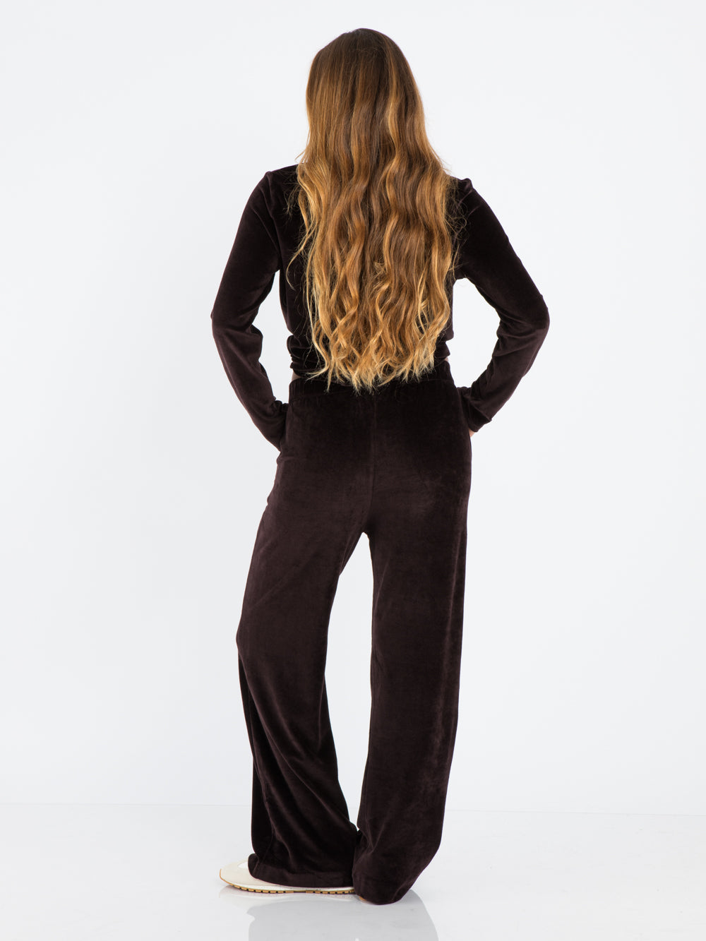מכנסיים בגזרה ישרה ומשוחררת, עשויים מבד קטיפה רך ואוורירי בהרכב איכותי של 48% כותנה אורגנית, 48% מודל ו־4% אלסטן.