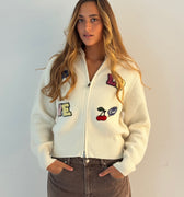 קרדיגן סרוג עם רוכסן בצבע איוורי, בגזרה רגועה ונוחה. הקרדיגן עשוי בד סריגה איכותי ורך, עם כיסי פאץ’ קדמיים להוספת פונקציונליות ומראה קז’ואל אלגנטי
